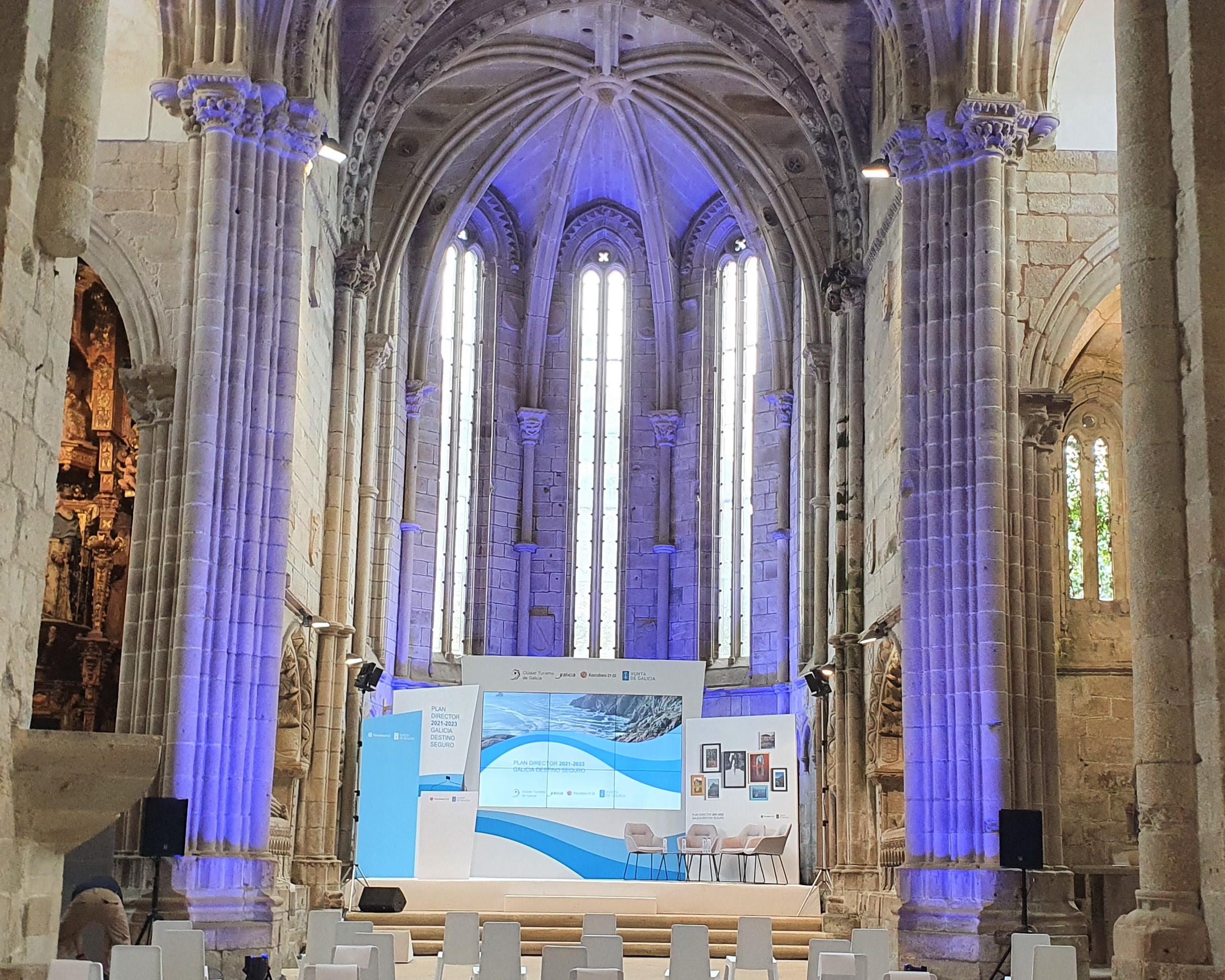 Para la presentación del Plan Director de Turismo de Galicia, nos encargaron este evento llave en mano. Nos ocupamos de pensar, diseñar y montar el espacio con escenario y audiovisuales, de las invitaciones y regalo corporativo para entregar en el evento que contuviese el propio plan, de realizar el video, del protocolo, de la emisión en streaming; un trabajo de lo más completo y de lo más gratificante, porque al final, todo sale bien!